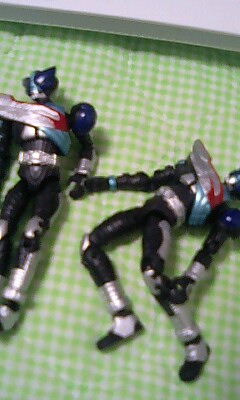映画といえば、大規模ロードショー作品を公開するワーナーマイカルかイオンシネマぐらいしかなく、巷で評判だがあまり広範囲で公開してくれない作品は、ユナイテッドシネマ金沢か、市街中心部にあるシネモンドで見るしかない。 まあなんていったって遅いんだ、来るのが。 This is englandを見られるのは今月末になってやっとだ。HOT FUZZだってほとぼりが冷めてからようやくきたし、愛のむきだしに至っちゃ来月になってようやく鑑賞可能だ。 どうせ来年は東京なり京都なり(と信じたいが)大都市へ行くことになる。行く。頑張ろう。 そうなればもう、巷の評論サイトで絶賛される作品を、悶々と待つ日々ともおさらばだ。ヘッヘーだ。 というお菓子があるのです。モーションリバイブシリーズと読みます。 一箱500円なの。これ。 食玩じゃなくて単なる人形なんですけどね。 いや、これがかなり関節が動くんですよね。 気に入りますよ、そりゃ。 ベッドの枕元の棚の上で殺陣をやらせてフヘヘヘフヘッヘ笑ってるような男ですから。 結構小さくて軽いけど、基本的に戦闘ポーズ、ライダーキック、花山ファイティングポーズ、シグルイ などかなりのポージングが出来るので、面白くて2箱買ってしまいました。 製品自体はキバ放送開始前に発売されていたものなので、恐らく追加入荷もないので。 ねえ。 2箱ですよ。 2箱買ったんですよ? ふたつともこいつ。 風間さん。ねえ、風間さんったら。 私は今のところ、ディケイド版剣の世界のムッキー ぐらいしかあなたより残念な人は見てませんよ? あなたワームのお姉さんとすこしいい感じになっただけで終わりだったでしょ? なんか活躍したか? 劇場版見たときに隣にいた親戚の子供には 「まあドレイクだし…」 とか言われてたよ? 何なの? 私に対する復讐なの? 今日からこいつらの名前はトンボブラザーズだ。 右のまともな立ち方で、右肩が異様に緩いのが姉だ。 左のひどい立ち方で、右肩が異常に硬いのが弟だ。 よかったな、ドレイクども。